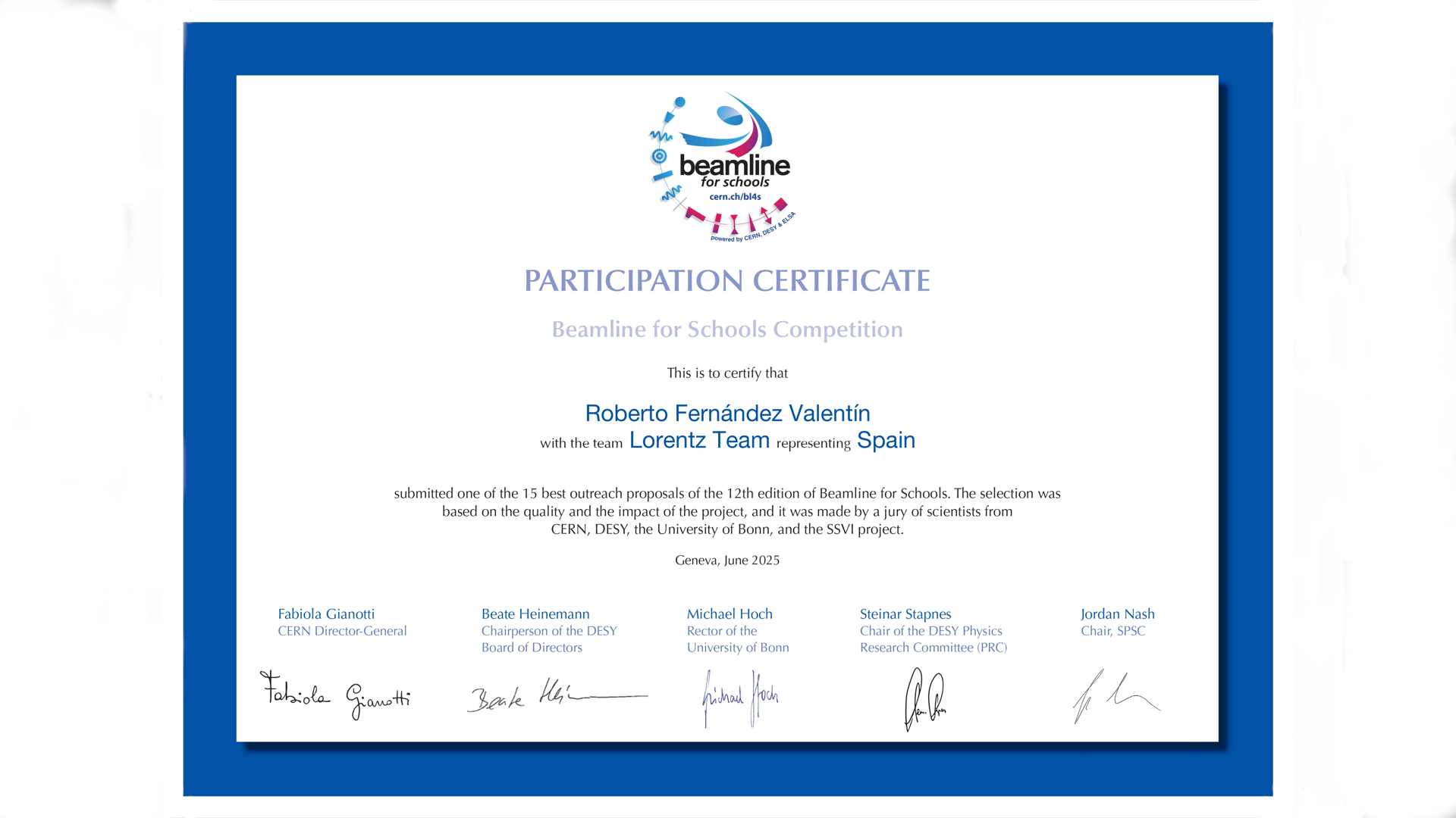 Recientemente, un miembro del Grupo de Estudiantes de la RSEF ha sido premiado con el BL4S 2025 Outreach Proposal Award, un certamen mundial organizado por el CERN, DESY, ELSA, SSVI y la Universidad de Bonn. A continuación, el líder del equipo, Roberto Fernández Valentín va a relatar su experiencia en la competición.